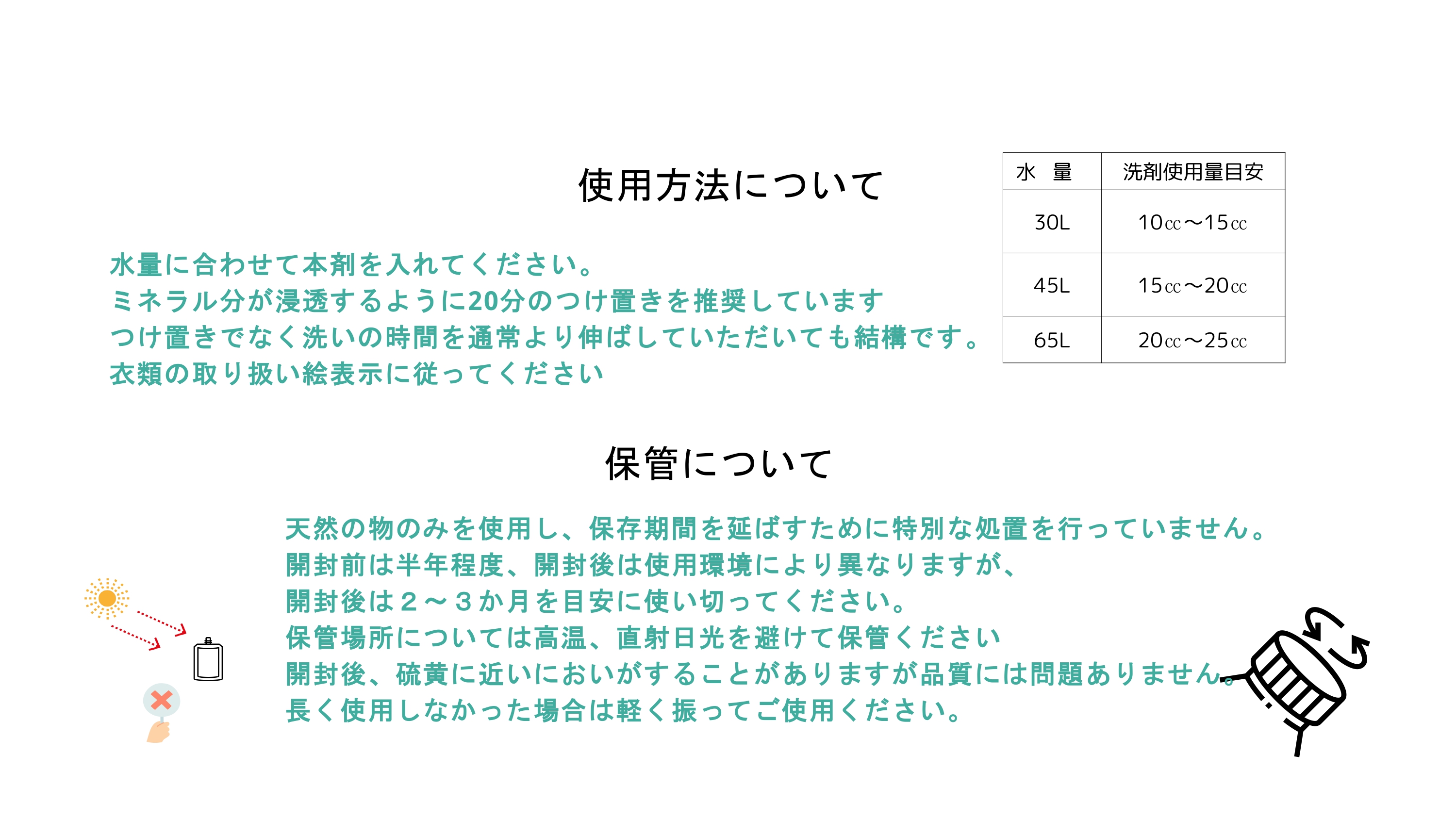 香料も、界面活性剤も、蛍光増白剤も使っていません。