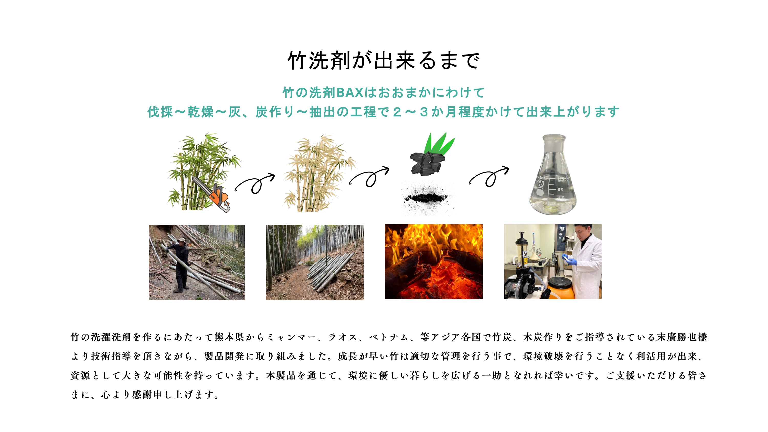 竹という再生可能な資源と、昔ながらの知恵から生まれた洗剤です。